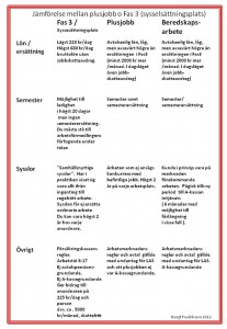 Klicka på bilden för att se den tydligare. Den visar en jämförelse mellan åtgärden FAS 3 och tidigare åtgärderna Plusjobb och Beredskapsjobb.