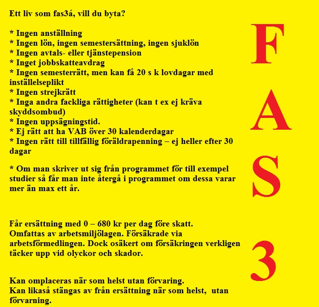 Har varit i FAS 3 och sett det från insidan. Har haft Nystartsjobb men tyvärr gick företaget i konkurs varför jag åter letar jobb med lykta och ljus. Främst inom detaljhandel och inom livs. Blev tillfrågad att skriva om FAS 3 på Solrosuppropet.se och sitter idag med som ledamot i föreningen. Vill passa på att Tacka för förtroendet.